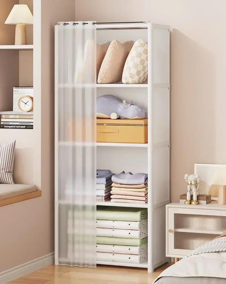 Armário multiuso à prova de poeira rack de armazenamento alta capacidade organização prateleiras móveis armário simples pano guarda-roupa